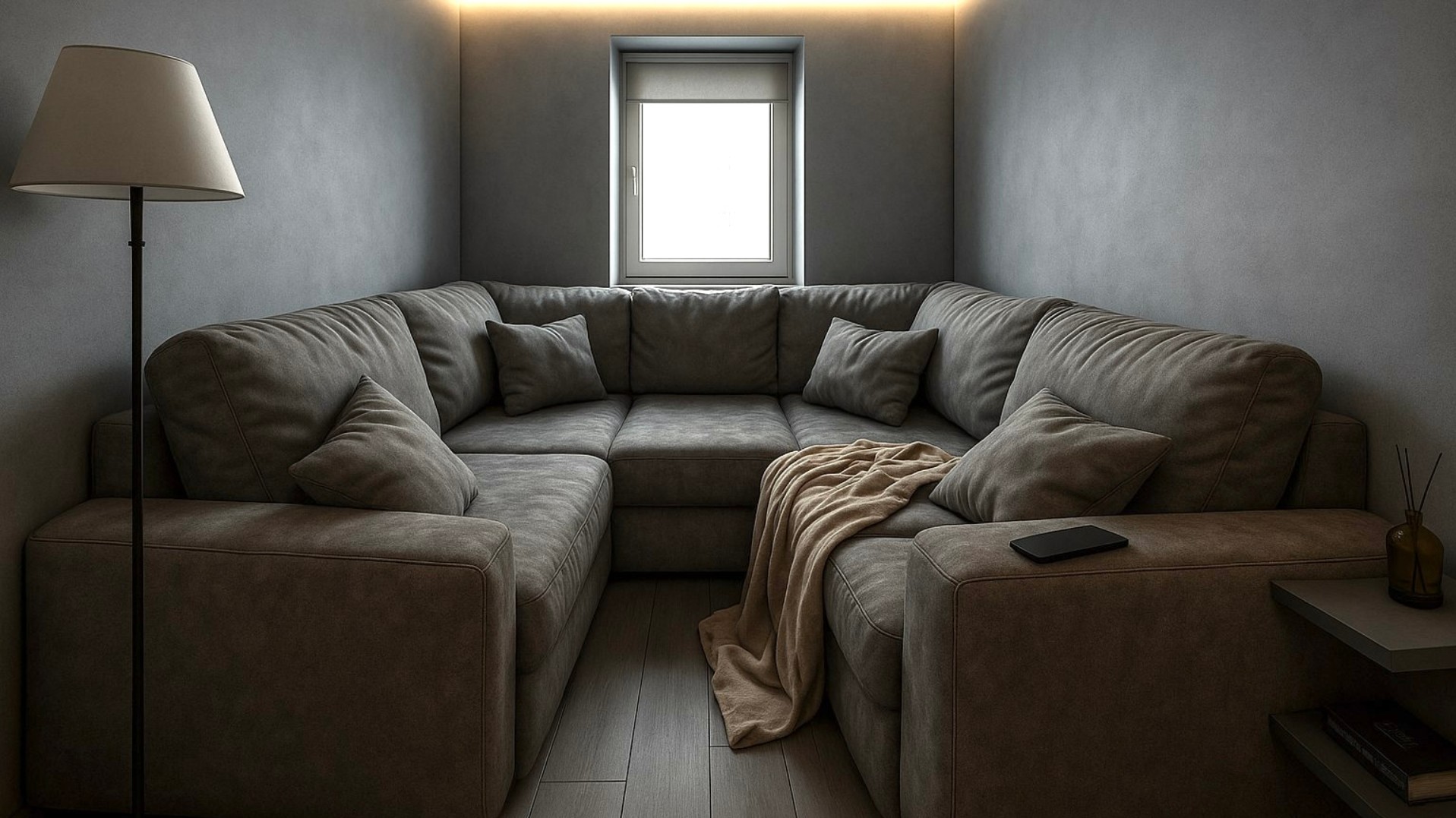 Современный дизайн интерьера маленькой квартиры словно кричит: в комнату срочно нужен огромный диван, который займет почти всю площадь помещения! Да, больше ни на что не будет места, зато как эффектно и величественно!
